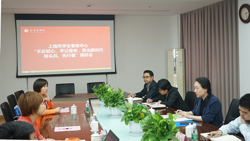 为全面贯彻落实党的十九大精神,按照习近平总书记关于大兴调查研究之风和上海市教委“不忘初心、牢记使命,勇当新时代排头兵、先行者”大调研统一安排和部署,上海市学生事务中心党总支书记、主任陈华,副主任周红星等一行6人于4月20日下午赴我校对学生事务工作进行调研。校党委副书记、副校长翁德玮及学工部、学生处(就业创业指导服务中心)相关人员参与调研座谈。